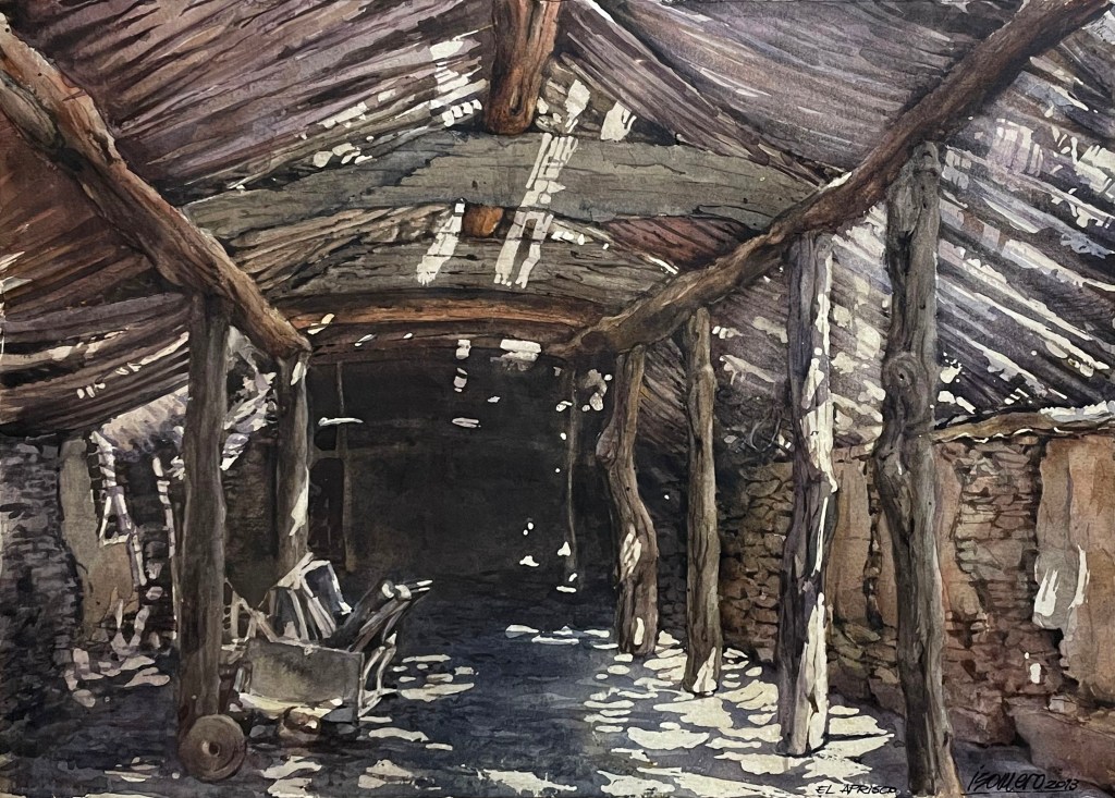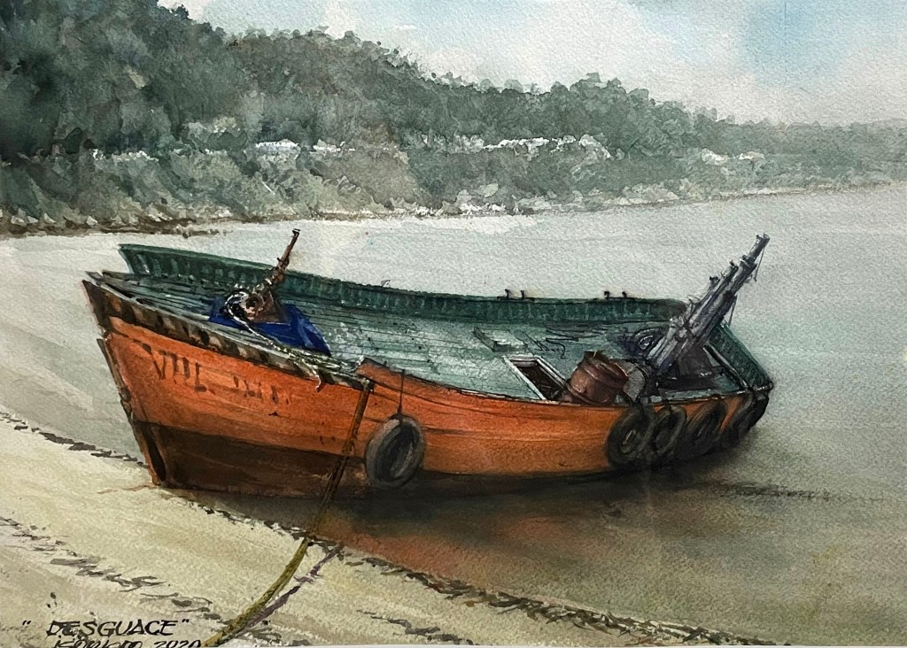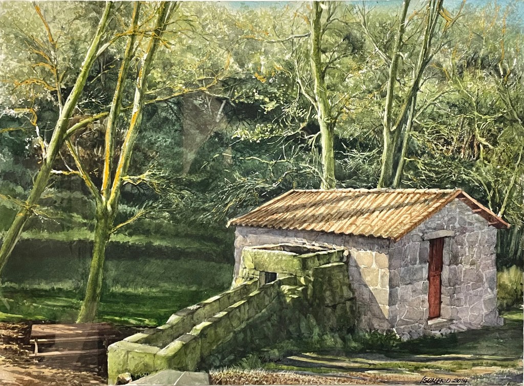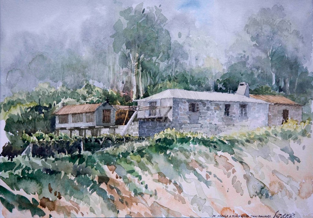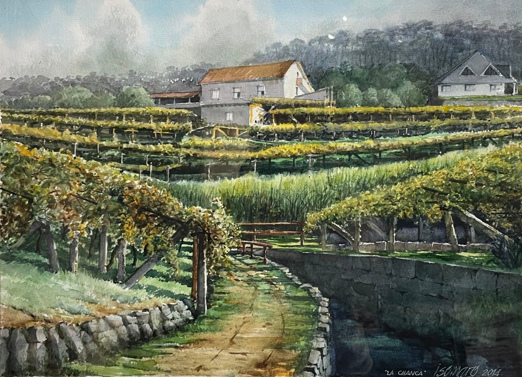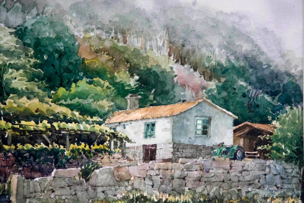 La influencia en la pintura y dibujo de la carrera de Arquitectura se hace notar en el tratamiento de la acuarela, no sólo con el juego de luces y sombras y transparencia del color, sino, además, en la superposición de tintas, característico de la AGUADA.