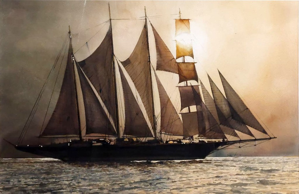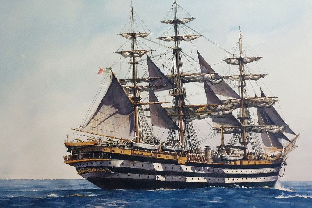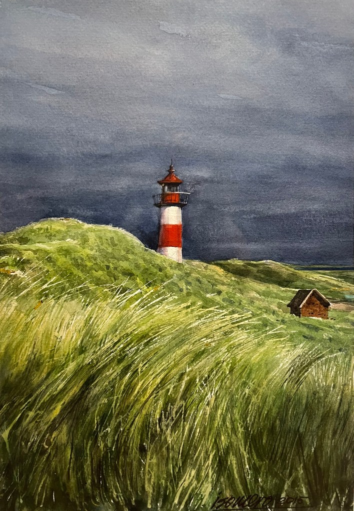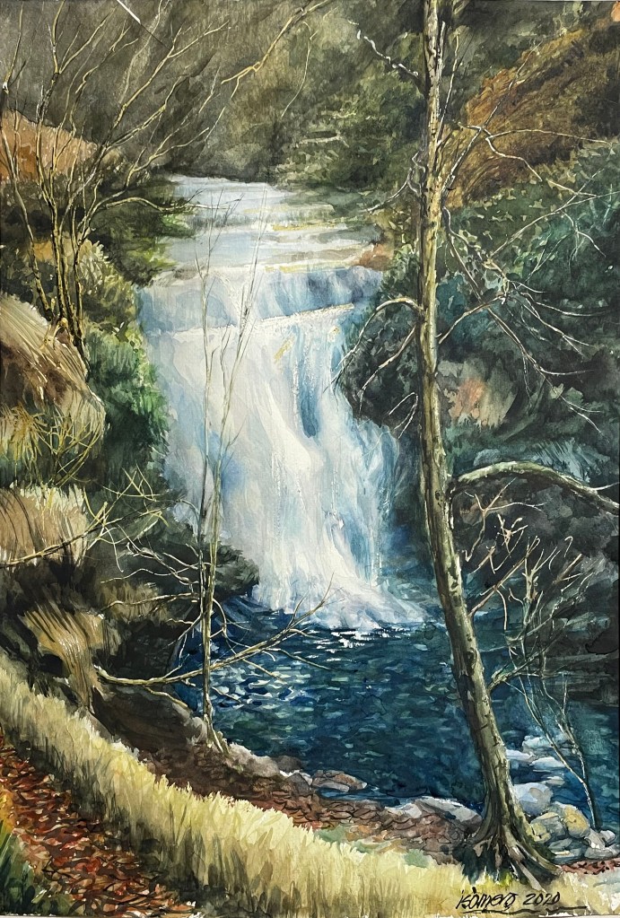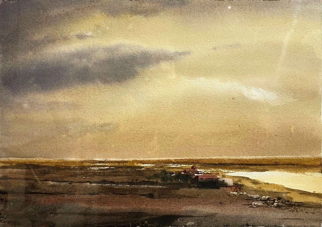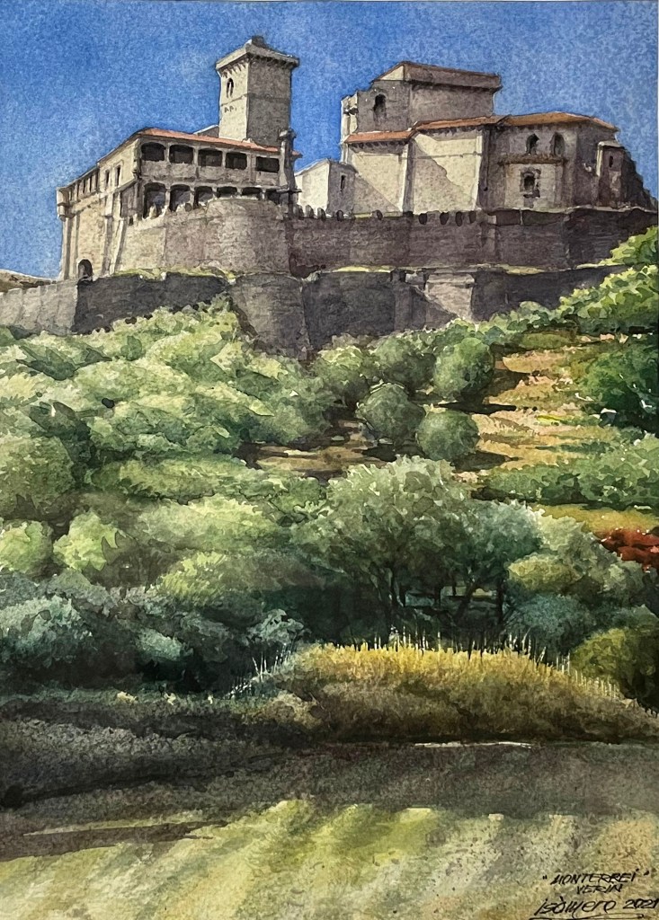 La influencia en la pintura y dibujo de la carrera de Arquitectura se hace notar en el tratamiento de la acuarela, no sólo con el juego de luces y sombras y transparencia del color, sino, además, en la superposición de tintas, característico de la AGUADA.